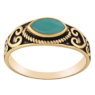 Home | Fashion Rings | Brass Gemstone Rings | Beautiful Oxidised Pattern Around Green Onyx Marquise Shape Solid Brass Ring