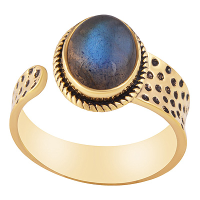 Stunning Oxidised Texture Around Labradorite Oval Shape Solid Brass Ring