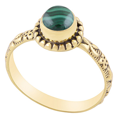 Home | Fashion Rings | Brass Gemstone Rings | Gorgeous Rawa Work Around Malachite Round Shape Solid Brass Ring