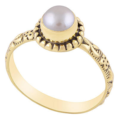 Home | Fashion Rings | Brass Gemstone Rings | Gorgeous Rawa Work Around Pearl Round Shape Solid Brass Ring