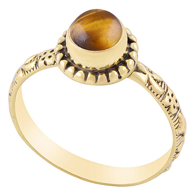 Home | Fashion Rings | Brass Gemstone Rings | Gorgeous Rawa Work Around Tiger's Eye Round Shape Solid Brass Ring