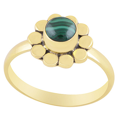 Home | Fashion Rings | Brass Gemstone Rings | Alluring Coin Work Around Malachite Round Shape Solid Brass Ring