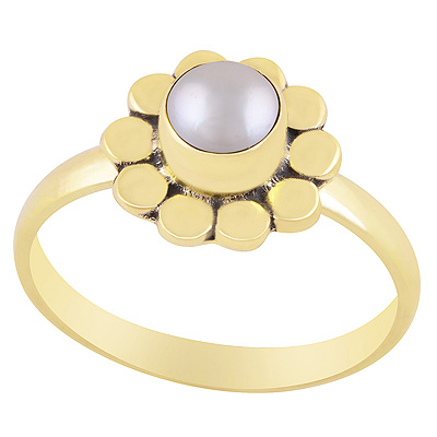 Home | Fashion Rings | Brass Gemstone Rings | Alluring Coin Work Around Pearl Round Shape Solid Brass Ring