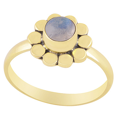 Home | Fashion Rings | Brass Gemstone Rings | Alluring Coin Work Around Rainbow Moonstone Round Shape Solid Brass Ring