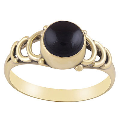 Gorgeous Wire Work Pattern Around Black Onyx Round Shape Solid Brass Ring