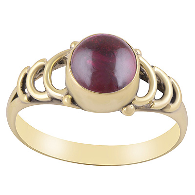 Gorgeous Wire Work Pattern Around Garnet Round Shape Solid Brass Ring