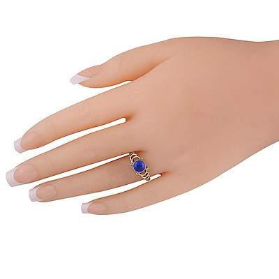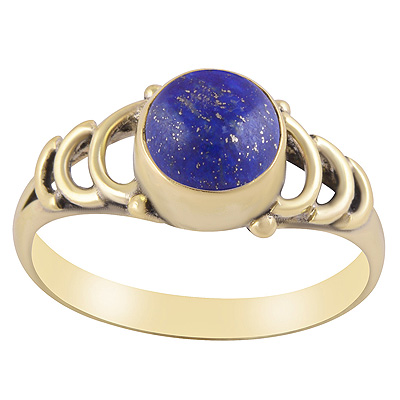 Gorgeous Wire Work Pattern Around Lapis Round Shape Solid Brass Ring