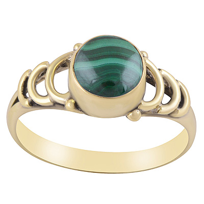 Gorgeous Wire Work Pattern Around Malachite Round Shape Solid Brass Ring