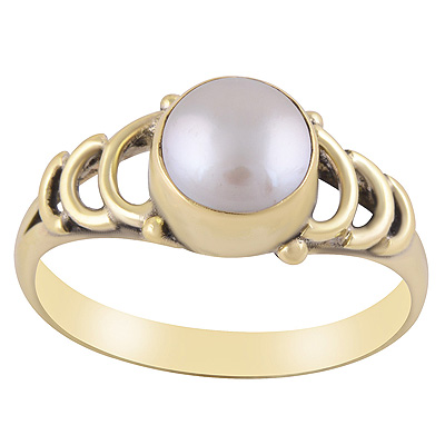 Gorgeous Wire Work Pattern Around Pearl Round Shape Solid Brass Ring