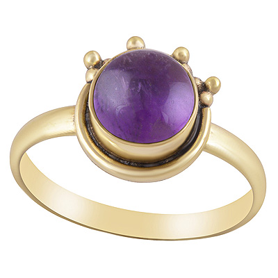 Stunning Rawa And Wire Work Pattern Around Amethyst Round Shape Solid Brass Ring