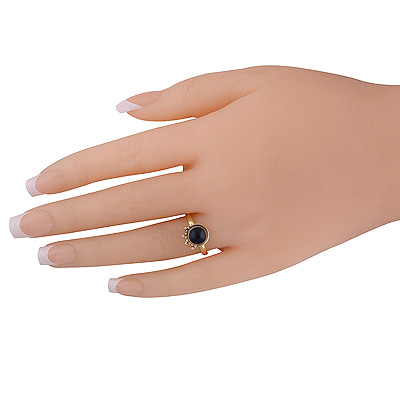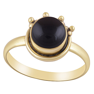 Stunning Rawa And Wire Work Pattern Around Black Onyx Round Shape Solid Brass Ring