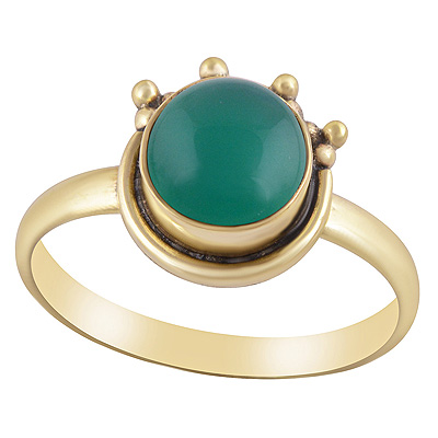 Stunning Rawa And Wire Work Pattern Around Green Onyx Round Shape Solid Brass Ring