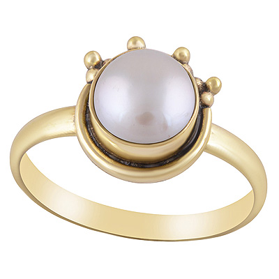 Stunning Rawa And Wire Work Pattern Around Pearl Round Shape Solid Brass Ring
