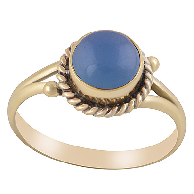 Stunning Oxidised Twisted Wire And Rawa Work Around Blue Chalcedony Round Shape Solid Brass Ring