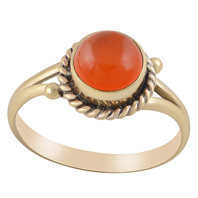 Stunning Oxidised Twisted Wire And Rawa Work Around Carnelian Round Shape Solid Brass Ring