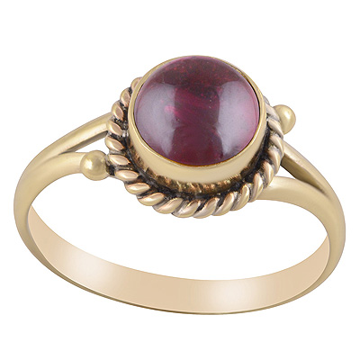 Stunning Oxidised Twisted Wire And Rawa Work Around Garnet Round Shape Solid Brass Ring