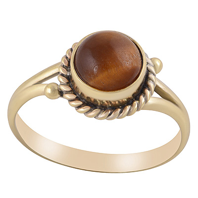 Stunning Oxidised Twisted Wire And Rawa Work Around Tiger's Eye Round Shape Solid Brass Ring