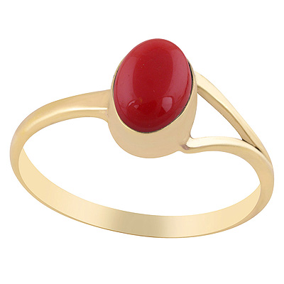 Home | Fashion Rings | Brass Gemstone Rings | Unique One Sided Split Shank Coral Oval Shape Solid Brass Ring