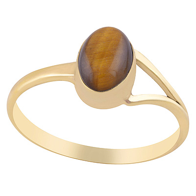 Home | Fashion Rings | Brass Gemstone Rings | Unique One Sided Split Shank Tiger's Eye Oval Shape Solid Brass Ring