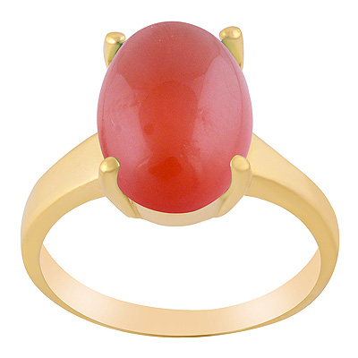 Gorgeous Bold Band Around Coral Oval Shape Solid Brass Men's Ring