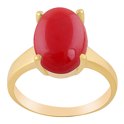 Gorgeous Bold Band Around Coral Oval Shape Solid Brass Men's Ring