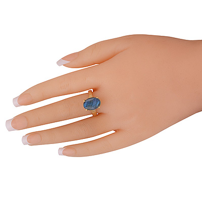 Gorgeous Bold Band Around Blue Chalcedony Oval Shape Solid Brass Men's Ring
