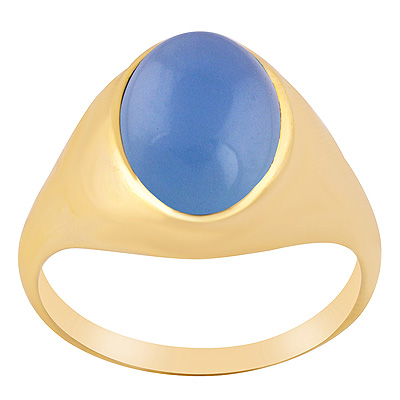 Home | Fashion Rings | Brass Men's Rings | Alluring Bold Band Around Blue Chalcedony Oval Shape Solid Brass Men's Ring