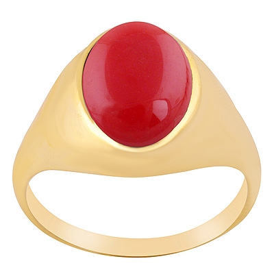 Home | Fashion Rings | Brass Men's Rings | Alluring Bold Band Around Coral Oval Shape Solid Brass Men's Ring