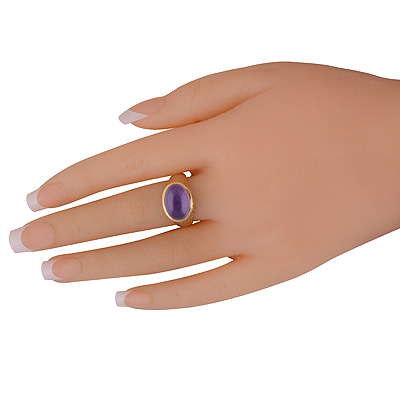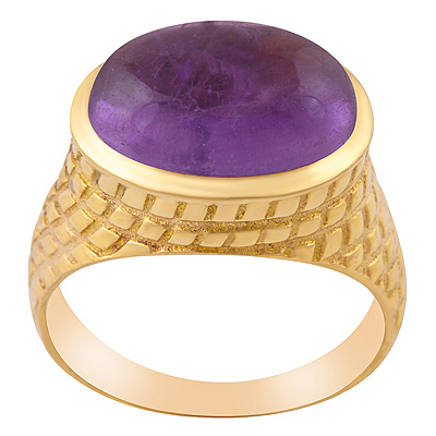 Stunning Texture Pattern Around Amethyst Oval Shape Solid Brass Men's Ring