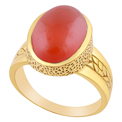 Beautiful Texture Work Around Carnelian Oval Shape Solid Brass Men's Ring