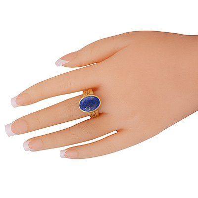 Beautiful Texture Work Around Lapis Oval Shape Solid Brass Men's Ring