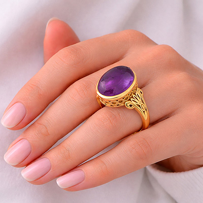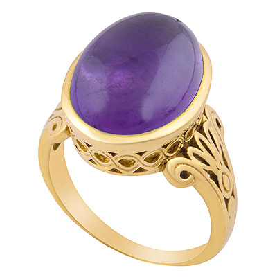 Alluring Shank W/ Texture Work Around Amethyst Oval Shape Solid Brass Men's Ring