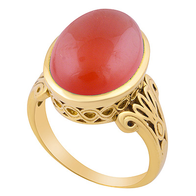 Alluring Shank W/ Texture Work Around Carnelian Oval Shape Solid Brass Men's Ring