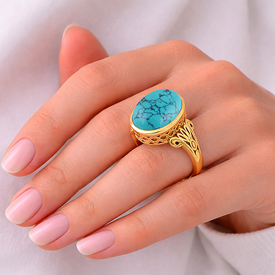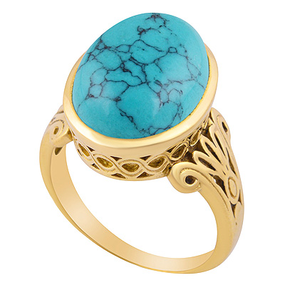 Alluring Shank W/ Texture Work Around Turquoise Oval Shape Solid Brass Men's Ring
