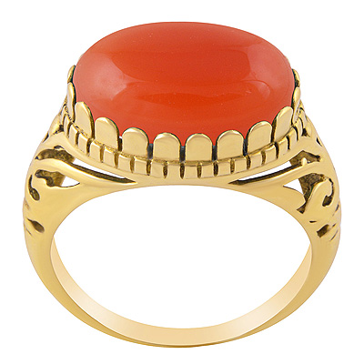 Beautiful Shank Design Around Coral Oval Shape Solid Brass Men's Ring