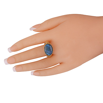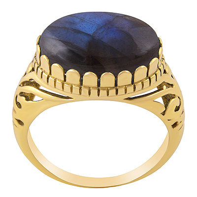 Beautiful Shank Design Around Labradorite Oval Shape Solid Brass Men's Ring