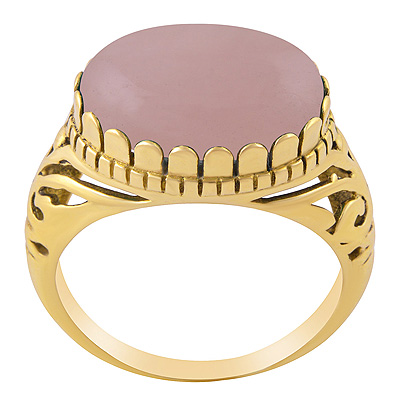 Beautiful Shank Design Around Rose Quartz Oval Shape Solid Brass Men's Ring