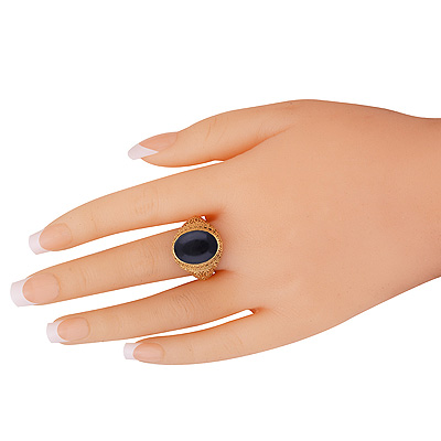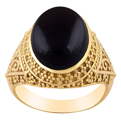 Gorgeous Rawa Work Around Black Onyx Oval Shape Solid Brass Men's Ring