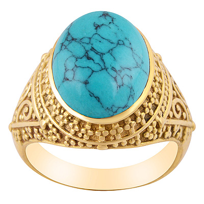 Gorgeous Rawa Work Around Turquoise Oval Shape Solid Brass Men's Ring