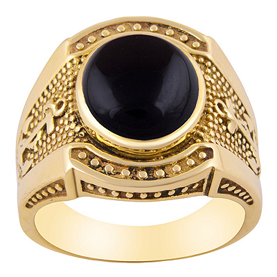Stunning Anchor W/ Rawa Pattern Around Black Onyx Oval Shape Solid Brass Men's Ring