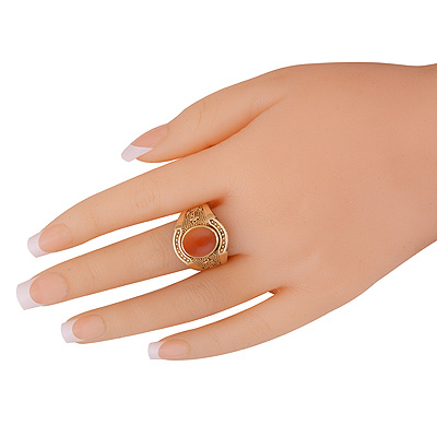 Stunning Anchor W/ Rawa Pattern Around Coral Oval Shape Solid Brass Men's Ring