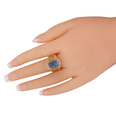 Stunning Anchor W/ Rawa Pattern Around Blue Chalcedony Oval Shape Solid Brass Men's Ring
