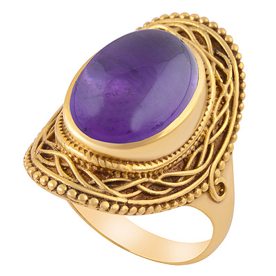 Beautifully HandCrafted work Around Amethyst Oval Shape Solid Brass Men's Ring