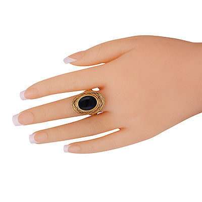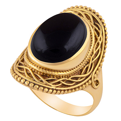 Beautifully HandCrafted work Around Black Onyx Oval Shape Solid Brass Men's Ring