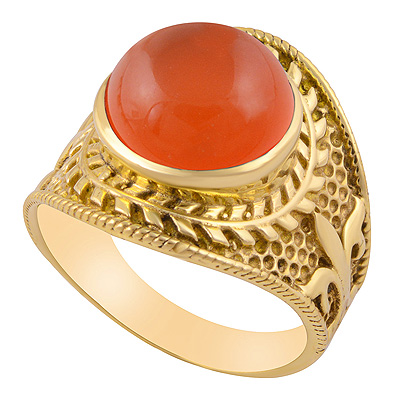 Gorgeous Handcrafted Work Around Carnelian Round Shape Solid Brass Men's Ring