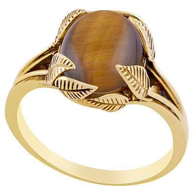 Stunning Leaves Shank Setting Around Tiger's Eye Oval Shape Solid Brass Men's Ring