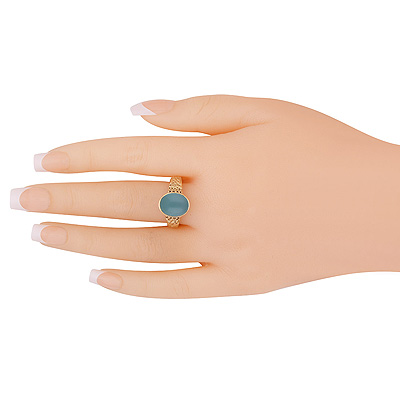 Home | Fashion Rings | Brass Men's Rings | Gorgeous Shank Design Around Aqua Chalcedony Oval Shape Solid Brass Men's Ring