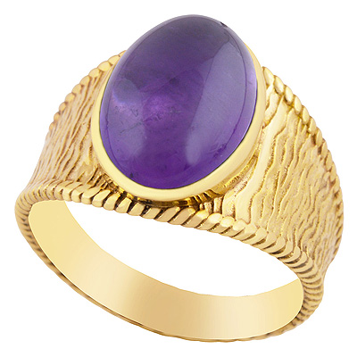 Beautiful Wave Pattern Around Amethyst Oval Shape Solid Brass Men's Ring
