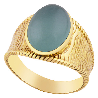 Home | Fashion Rings | Brass Men's Rings | Beautiful Wave Pattern Around Aqua Chalcedony Oval Shape Solid Brass Men's Ring