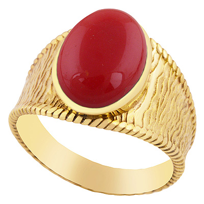 Beautiful Wave Pattern Around Coral Oval Shape Solid Brass Men's Ring